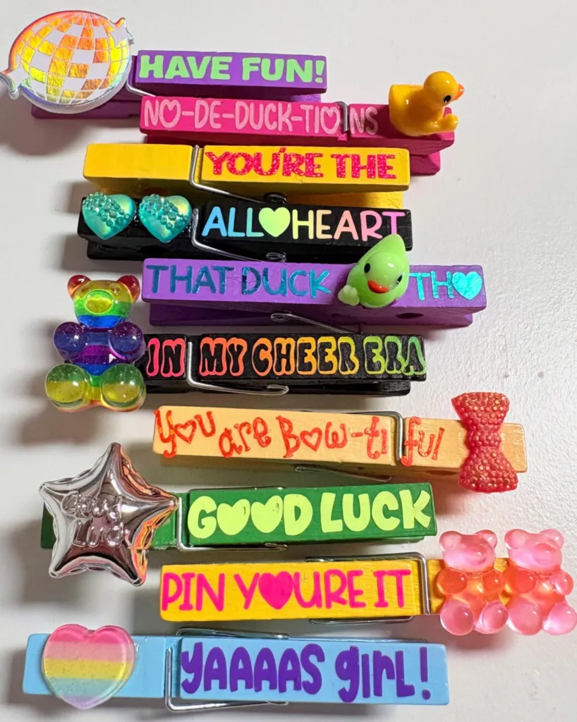 Yes, we are talking about decorated clothespins. The same object once reserved for laundry has become a quiet form of connection inside the All Star cheer world.