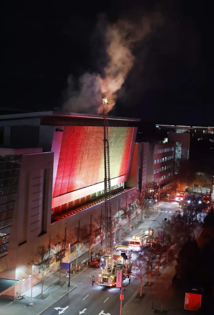 Drone footage released by officials showed heavy charring on sections of the roof but no visible interior damage. Cowell emphasized that the fire did not spread to neighboring structures, including nearby hotels and residential buildings overlooking the convention center.
