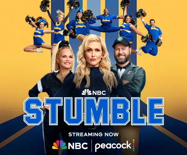 Stumble on NBC is a single-camera comedy that follows a former junior college cheer coach as she rebuilds her career by leading a mismatched squad of cheerleaders at a new school while navigating the competitive world of junior college cheer. Stream Season 1 on Peacock