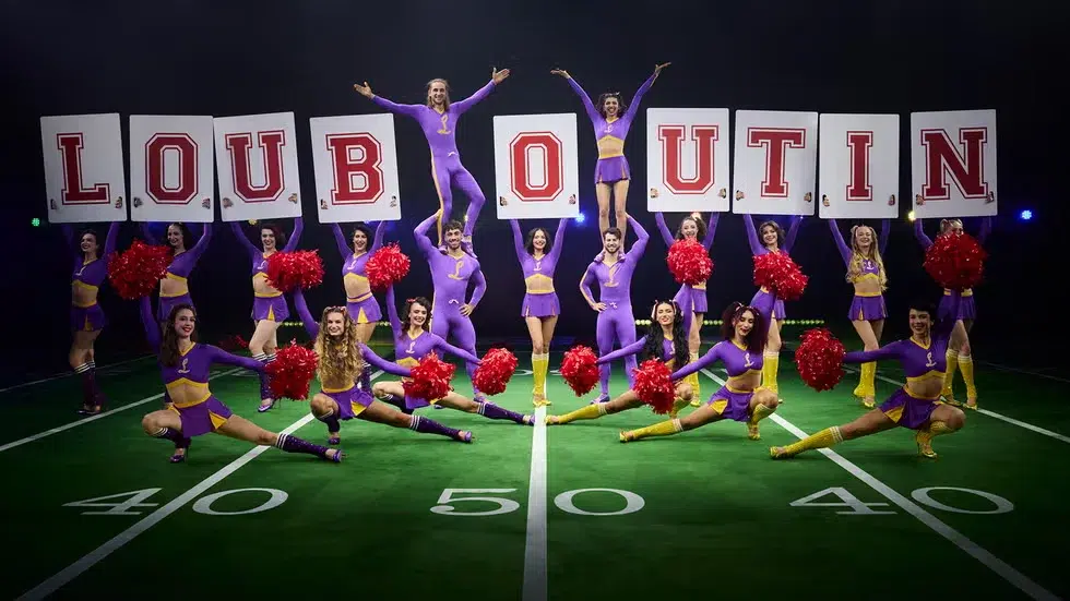 Loubi Show VI follows Louboutin’s previous collaboration with LaChapelle and Li, which featured the French Olympic artistic swimming team in a water ballet concept. This season’s show marked the first time the trio based the entire visual theme on cheerleading and American-style homecoming and game day performances.
